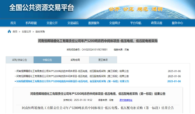 2025新年伊始,勝華電纜集團(tuán)傳來中標(biāo)喜訊
